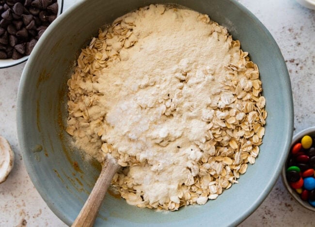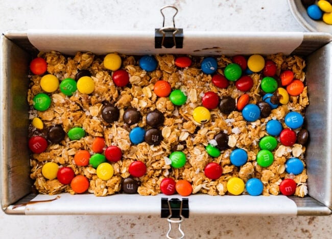 - M&M's– for topping the bars! They are so fun and colorful and a must for monster cookies!