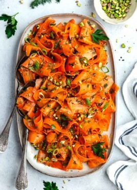 Roasted Red Pepper Soup with Chickpeas and Orzo