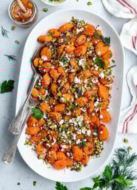 Roasted Carrots with Hot Honey, Pistachios, and Feta