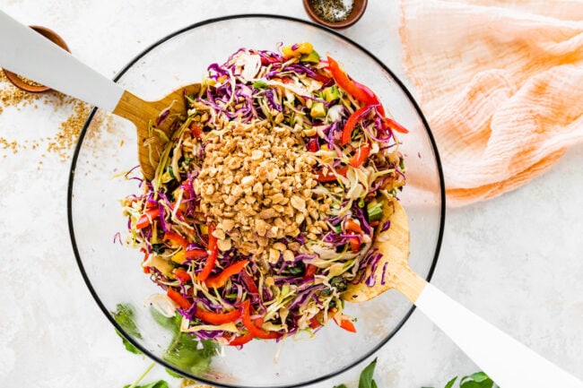 - Let the salad sit for 10–15 minutes before serving so the flavors can meld and the cabbage softens slightly while still staying crunchy.