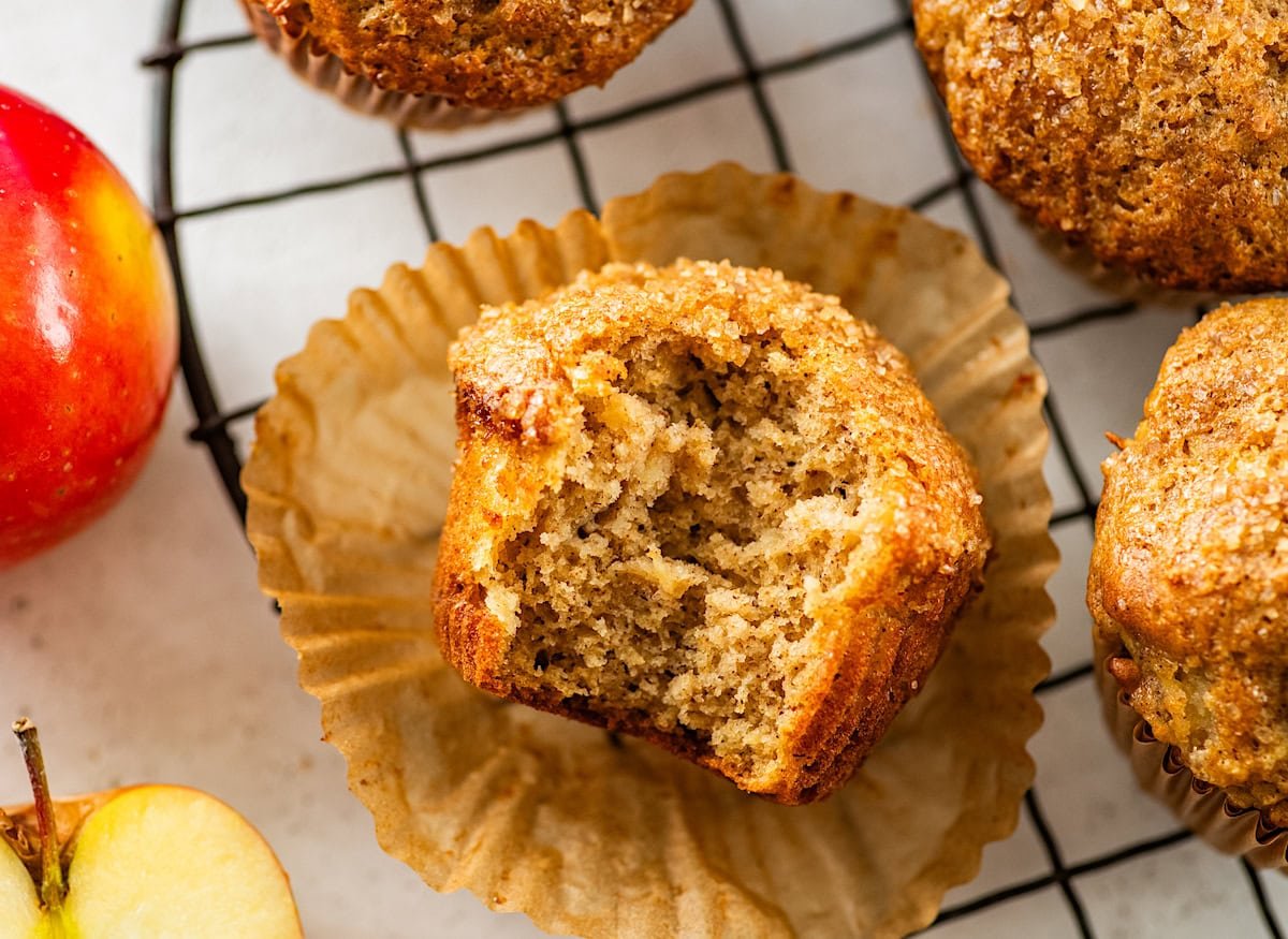 When apple season rolls around, I can't resist baking something warm and cozy and these Healthy Apple Muffins are one of my favorites. They're everything you want in a fall muffin: soft, tender, and filled with warm spices. Thanks to applesauce and freshly grated apple, every bite is bursting with real apple flavor.