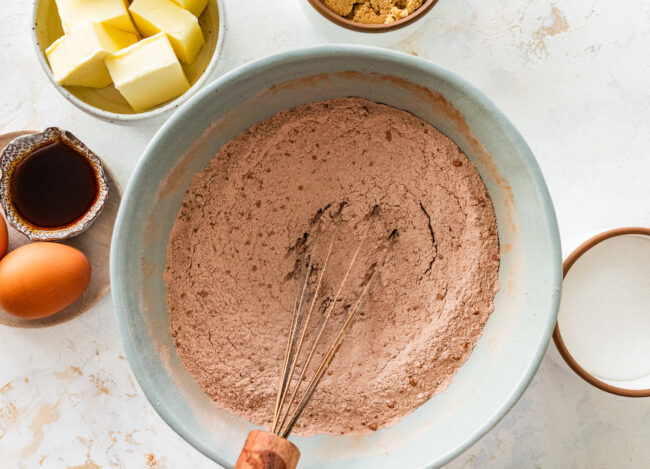 - Whisk the dry ingredients separately so the cocoa powder mixes evenly and you don't end up with pockets of dry cocoa.